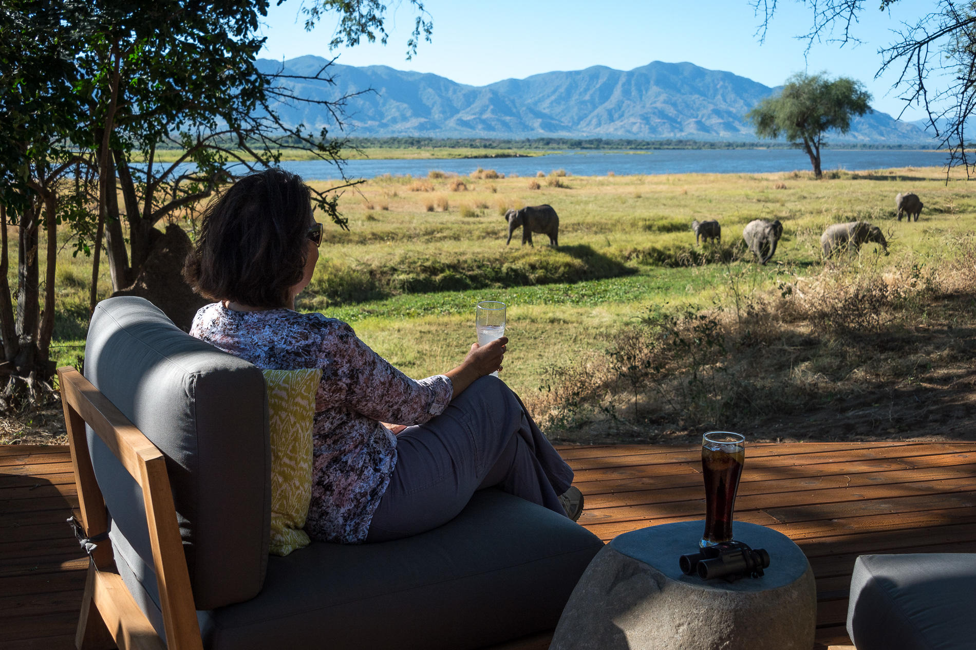 Watch herds of elephants pass by as you sit relaxing on the deck at Somalisa Camp, Image Credit: Janine Gous